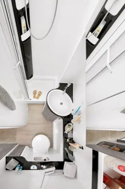 Наличие собственного санузла на борту делает вас независимым. На борту OPTIMA ONTOUR вы найдете все необходимое для ухода за собой. Косметика и другие средства по уходу надежно хранятся в зеркальном шкафу. Так что все остается на месте, даже когда вы в пути.