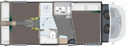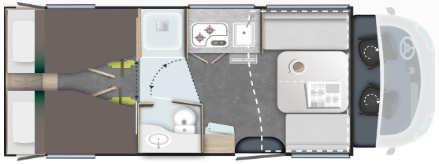 Эта уникальная модель включает в себя две двери для доступа в кузов автомобиля (одну спереди и одну сзади), модульную U-образную гостиную и стеклянную перегородку